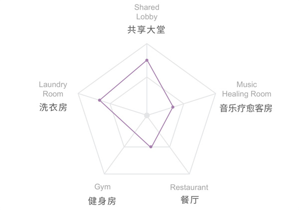 通过“共享大堂、音乐疗愈客房、自助餐厅、健身房、洗衣房”等硬件设施组合,和“一心服务”的服务理念