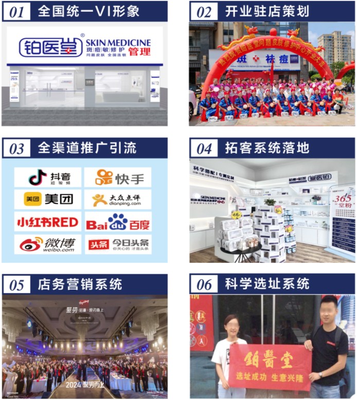 总部为加盟商提供铂医堂祛斑祛痘合作店开业庆典促销支持、季节性促销方案、节假日活动促销方案。