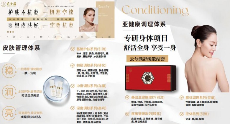云兮颜专注女性面部精细化管理、美体养生和健康管理,根据顾客的需求和皮肤状况,为每位顾客打造专属护理方案。云兮颜拥有专业的服务团队,让顾客在享受美丽的同时,也能拥有健康和自信。