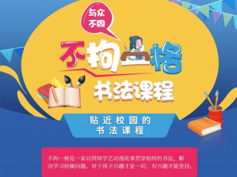优势三不拘一格是一家以拜师学艺动漫故事贯穿始终的书法,解决学习枯燥问题。对于孩子兴趣才是一切,有兴趣才能坚持。